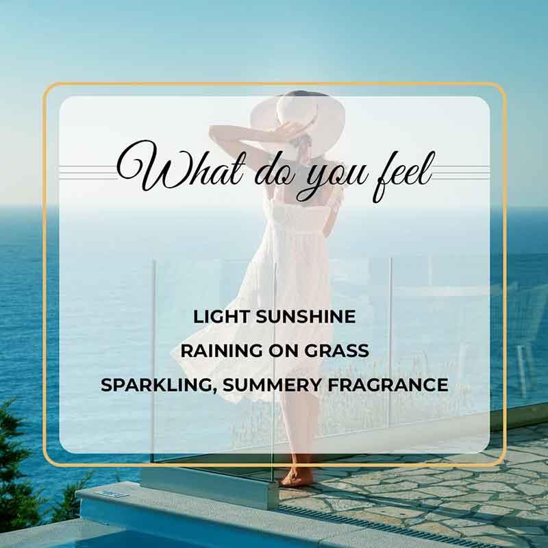 Sand kicked up on summer days by the beach defines the way the aroma makes you feel. The fragrance has notes of coriander, Muguet, amber, etc which make it invigorating and warm. Perfect for a lunch in the backyard.