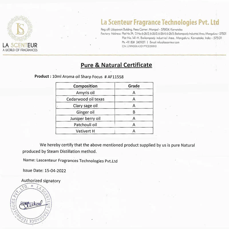 Manufactured by: La Scenteur Fragrance Technologies Pvt. Ltd., Baikampady Industrial Area, Mangaluru, Karnataka - 575011